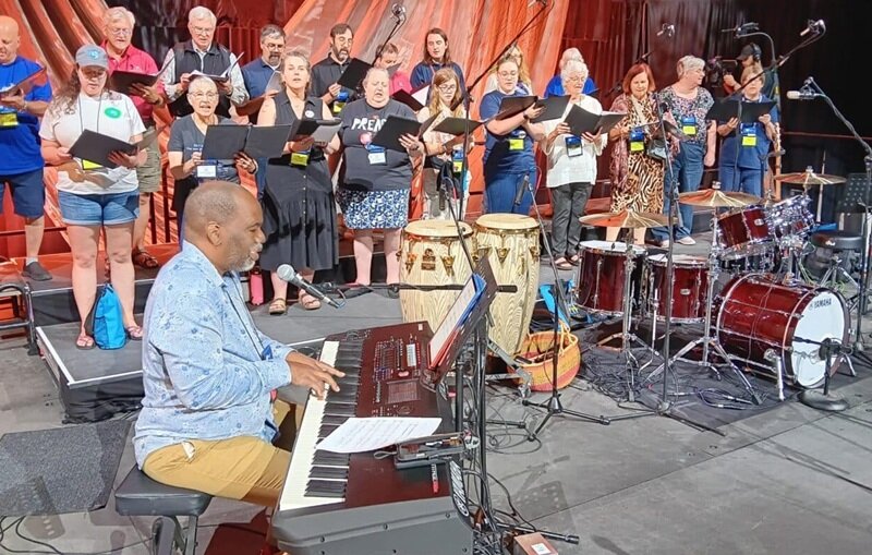 The rehearsal on Sunday, July 14, may have been their first in person, but the Synod singers had been at it for a while. Over the last six months, the they’ve worked from sheet music and audio recordings Johnson sent them – in some cases his own arrangements. They also had one Zoom rehearsal earlier in July.